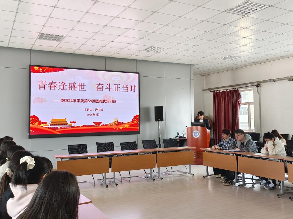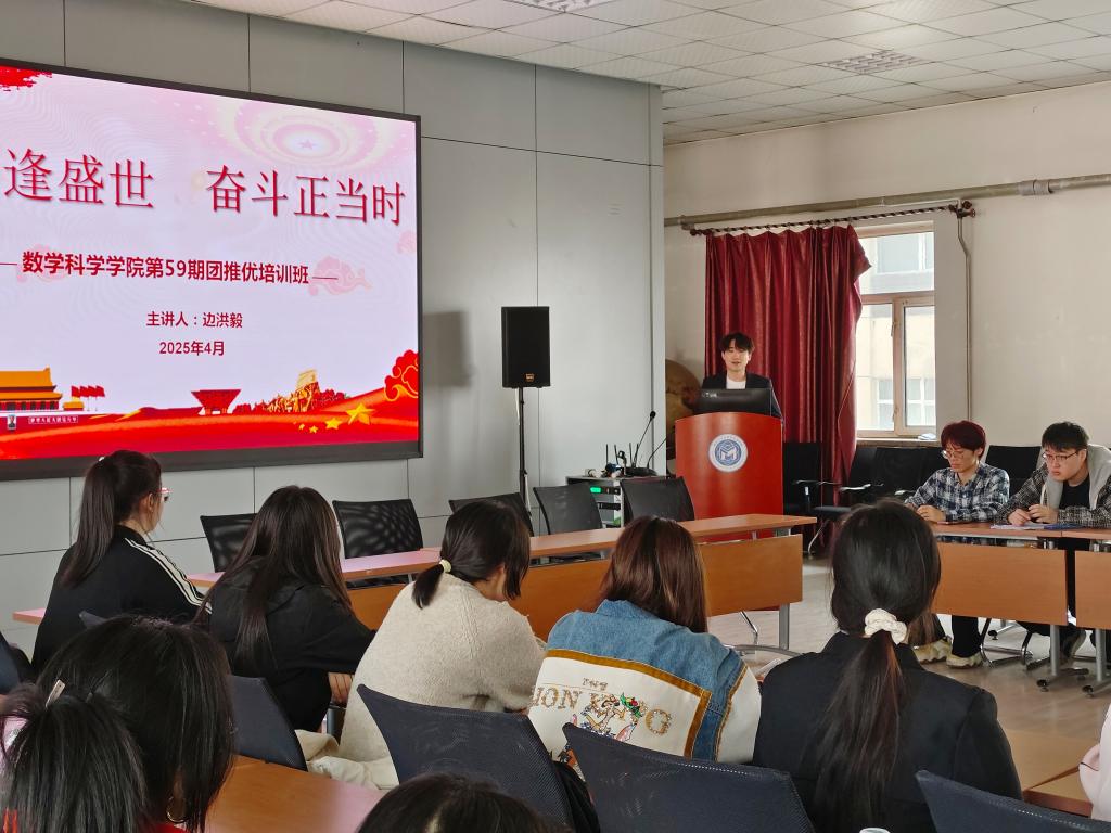 为深入贯彻党的二十大精神和党的二十届三中全会精神,引导广大团员青年坚定理想信念、勇担时代使命,为推进中国式现代化贡献青春力量。304永利集团于4月27日14:00在A8-723教室举办第五十九期共青团“推优”培训班,本次培训由学院团委副书记边洪毅老师主讲,全体“推优”培训班学员参加学习。