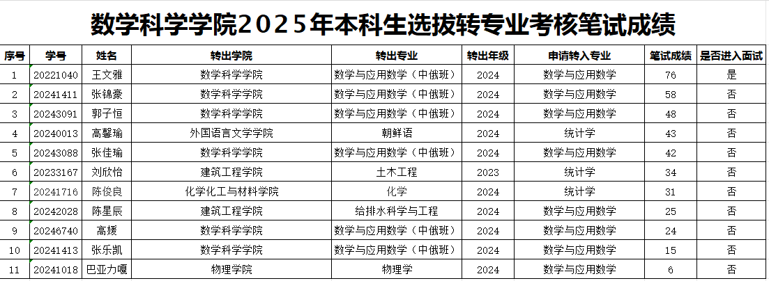 按照304永利集团2025年本科生选拔转专业工作方案要求,现将304永利集团2025年本科生选拔转专业考核笔试成绩予以公布。