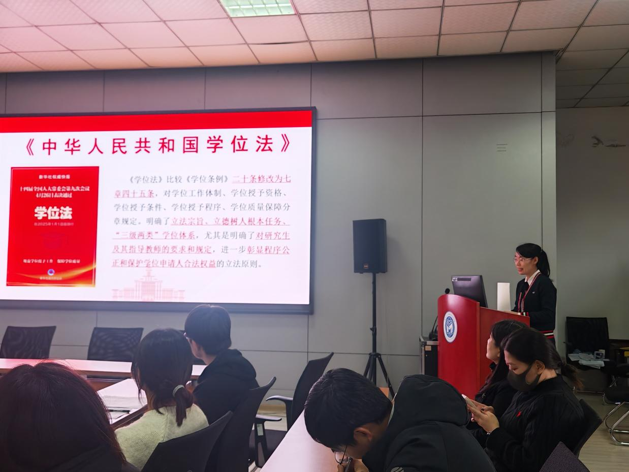 宋相梅深入解读了《中华人民共和国学位法》,重点阐释了学位授予程序、质量保障机制、学位异议与申诉等关键环节,并结合304永利集团研究生学位成果要求的实施细则,使师生对申请学位的流程与标准有了更明确,完整的认识,为研究生学术成长提供了清晰指引,也为进一步提升学位管理工作的规范性与科学性作出指导,同时对《304永利集团研究生申请学位成果基本要求(修订稿)》进行解读。