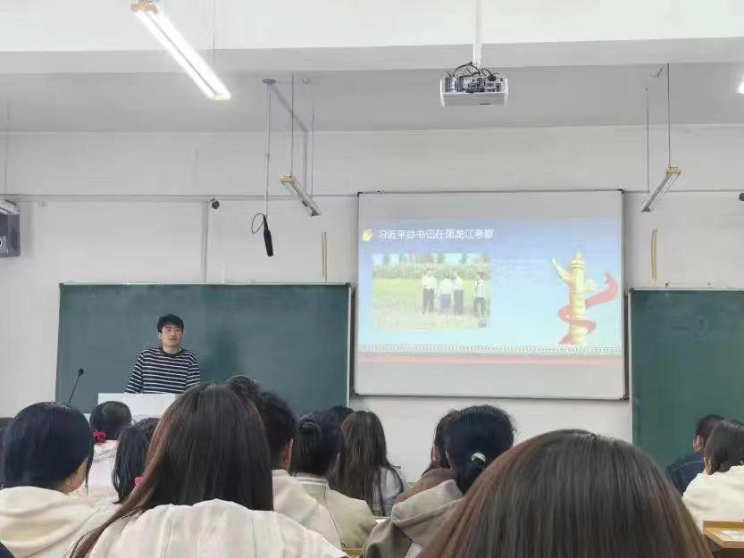 为深入学习贯彻习近平总书记在黑龙江省视察和主持召开新时代推动东北全面振兴座谈会时的重要讲话重要指示精神,进一步感悟思想伟力,汲取奋进动力。304永利集团召开“思想的力量”主题教育讲座,本场主题教育讲座由2023级辅导员边洪毅主讲,2023级全体新生参加。