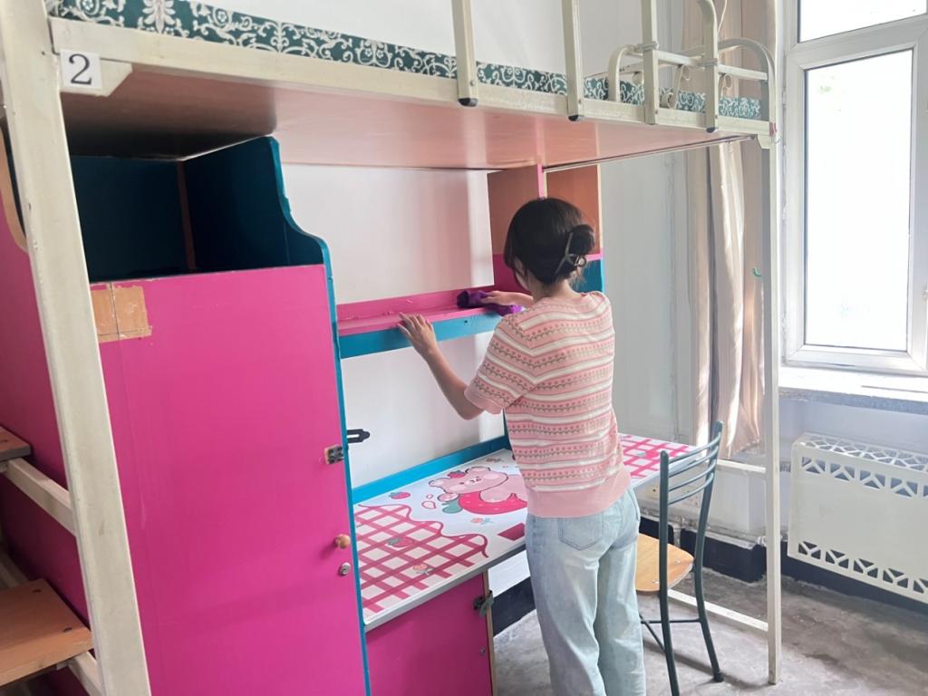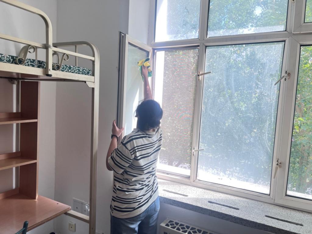 走进每一间寝室,志愿者们都仿佛化身为细心的园丁,用心呵护着这片即将绽放新绿的土地。他们有的拿起扫帚,仔细清扫地面上的灰尘与杂物;有的则拿起抹布,认真擦拭着门窗、桌椅,不放过任何一个角落。汗水在他们的额头上悄然滑落,但他们的脸上却始终洋溢着温暖的笑容。
