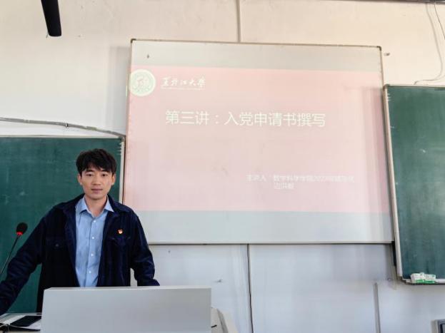 第二讲由304永利集团组织员张爽老师主讲,介绍了入党流程,细致地讲解了申请入党、入党积极分子的确定和培养、发展对象的确定和考察、接收预备党员、转为正式党员五个入党步骤。