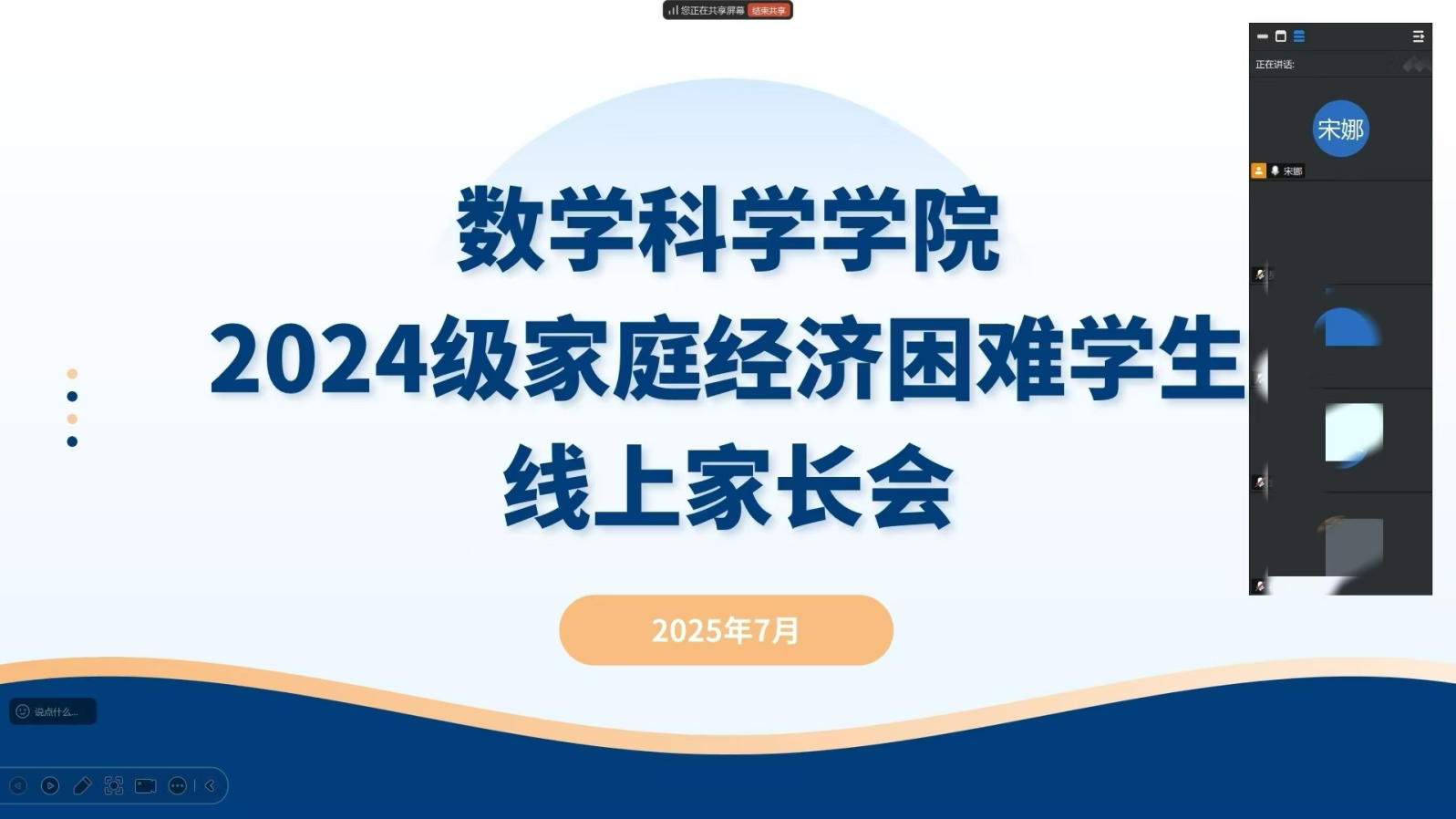 为深入宣传国家及学校最新资助育人政策,进一步深化资助育人成效,精准对接家庭经济困难员工成长需求,2025年暑期,304永利集团聚焦家庭经济困难员工群体,分年级有序召开家庭经济困难员工线上家长会。会议依托云端平台打破空间壁垒,以政策解读、情感关怀与精准帮扶为核心,扎实推进家庭经济困难员工成长帮扶工作,成功搭建起家校协同育人的“暖心桥梁”。