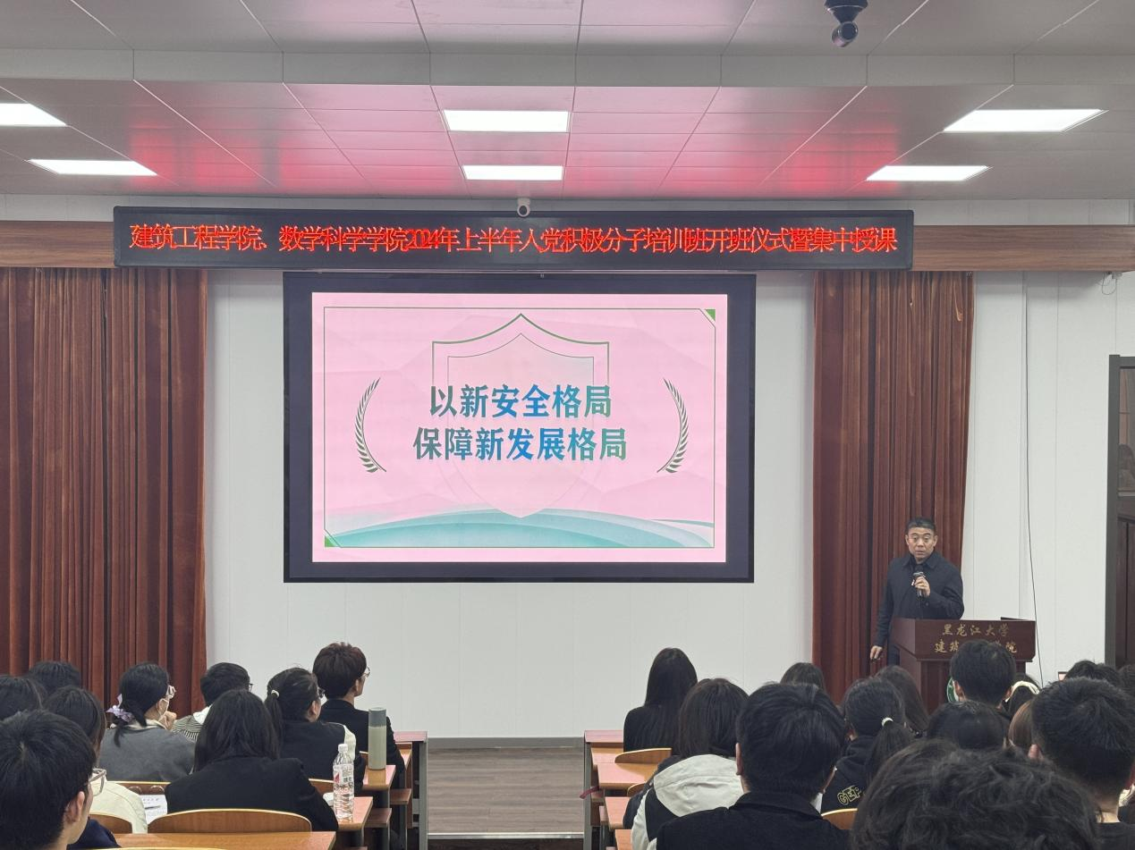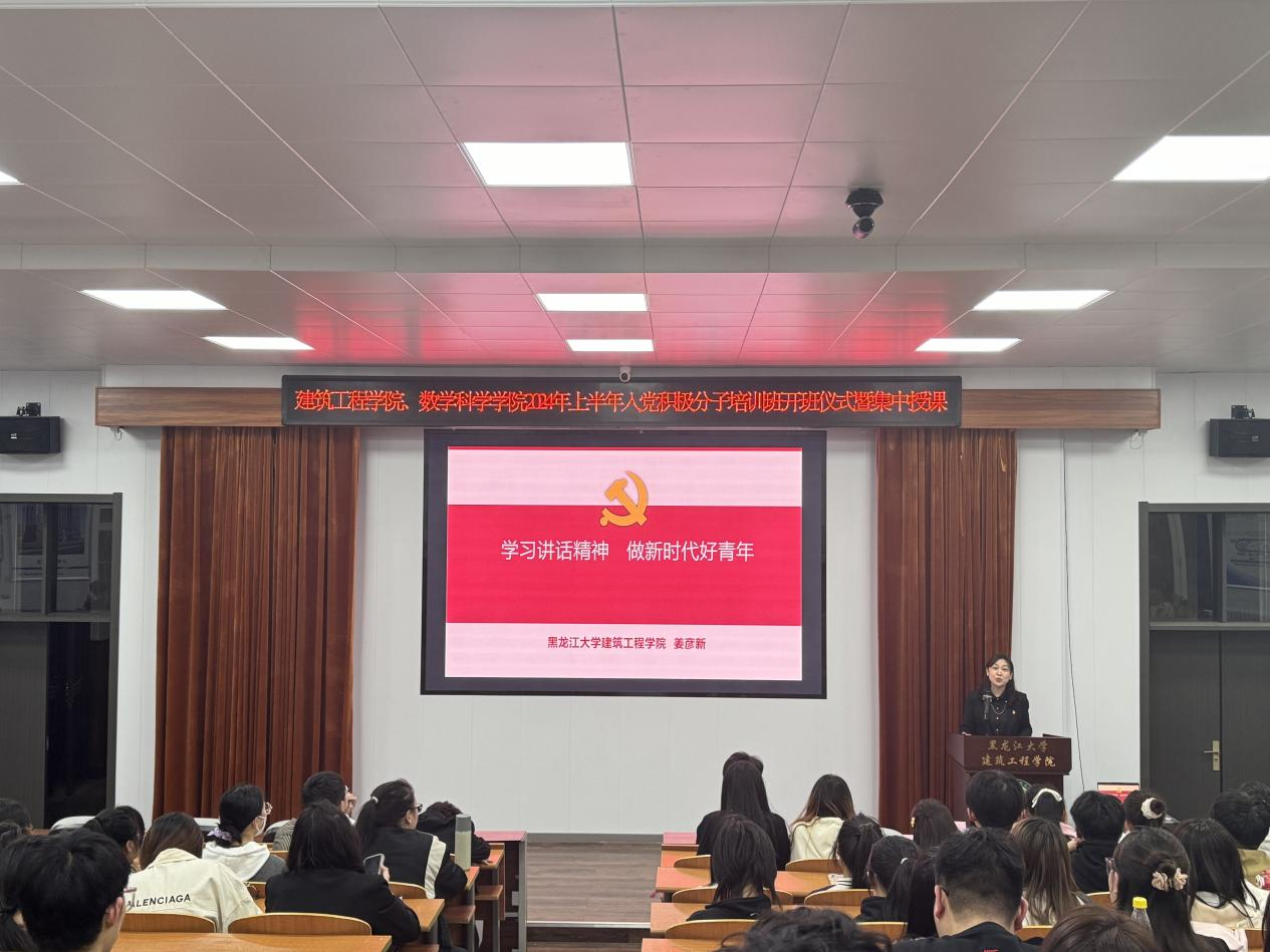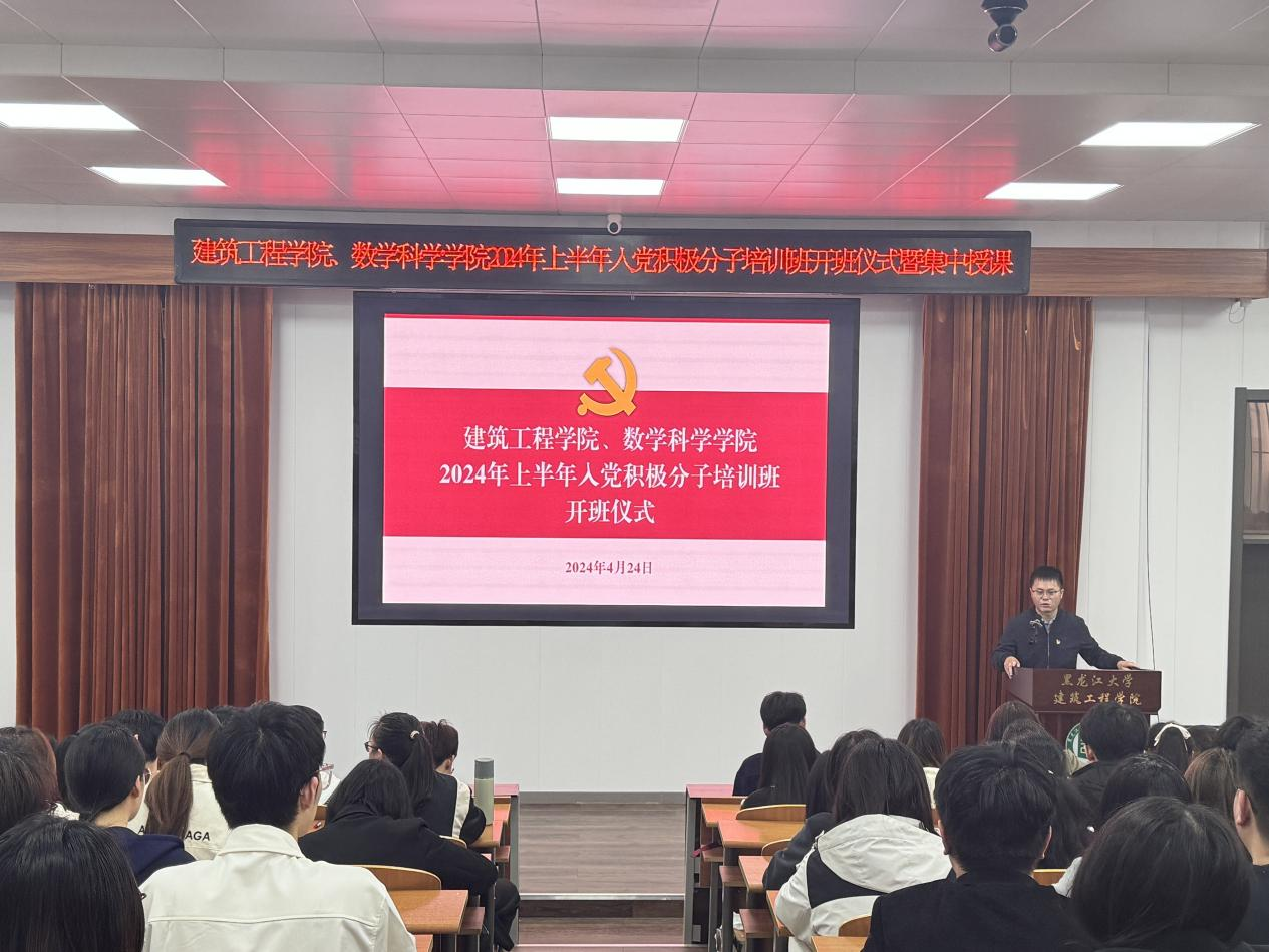 为切实做好入党积极分子教育培养工作,确保发展党员质量,引导入党积极分子深入学习党的理论知识,在思想上、政治上、行动上始终同党中央保持高度一致,2024年4月24日晚,304永利集团、建筑工程学院2024年上半年入党积极分子培训班开班仪式暨集中授课活动在建筑工程学院二楼阶梯教室举行。公司党委书记张龙、党委副书记徐静波、副处级组织员钱海霞及团委副书记、培训班班主任边洪毅;建筑工程公司党总支书记林强、党总支副书记姜彦新及团委副书记、员工党支部书记、培训班班主任关淦出席开班式,两个学院的本期入党积极分子培训班全体学员参加开班式和集中授课。建筑工程公司党总支组织员刘慧颖主持开班式和集中授课活动。