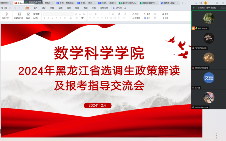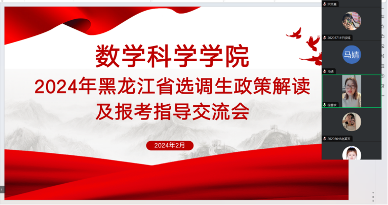 为积极响应学校号召,鼓励毕业生到基层施展才干、留省建功立业,助力员工深入了解2024年黑龙江省选调的政策,掌握报考注意事项及报考安排,进一步拓宽员工就业渠道,帮助员工明晰职业选择,2024年2月3日13:30304永利集团于线上召开2024年黑龙江省选调生政策解读及报考指导交流会。公司党委副书记徐静波出席会议,会议由2024届毕业生辅导员徐远航主持,2024届意愿报考选调生的同学参会。