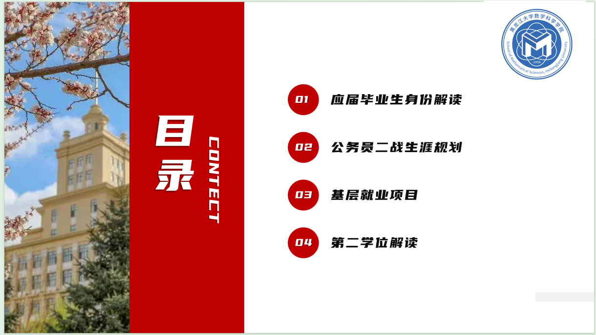 会上,徐远航介绍了当前就业形势和就业情况,并从应届毕业生身份解读、公务员二战规划、基层就业政策解读、第二学位解读四个方面展开讲解。她重点介绍了西部计划、三支一扶、特岗教师的政策背景、报名条件、报名时间、考核形式、报名注意事项和优待政策,通过详细的解读和案例分析,鼓励员工对基层工作有更全面的认识,了解基层工作的意义和价值,进一步在毕业时实现个人价值与社会价值的统一。
